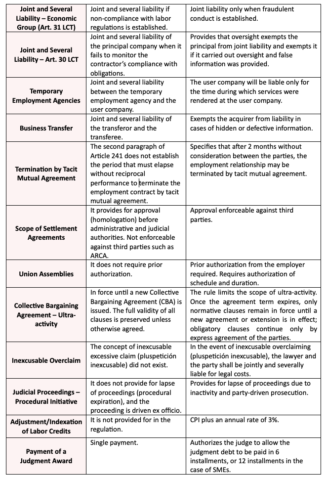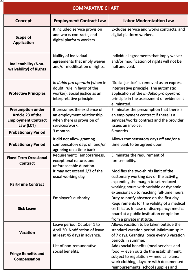 Comparative Chart: Employment Contract Law vs. Labor Modernization Law